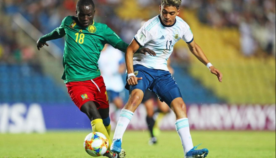 No fue simple el partido en el inicio para la albiceleste. A pesar de haber asumido el protagonismo del partido desde el inicio, fue Camerún quien se puso en ventaja a los 10´a través de un cabezazo de Francois Bere. El 1 a 0 en contra fue algo inesperado y el conjunto de Aimar intentó calmarse a través de la tenencia de la pelota, lo que le dio buen resultado. Hubo un par de situaciones polémicas. Primero un penal del arquero africano Ekoi sobre Bruno Amione que el árbitro serbio Srdjan Jovanovic increíblemente no sancionó, aun luego de revisar la jugada con el VAR. A los 26´, en cambio, sí cobró penal a favor de Argentina por una supuesta falta a Lautaro Cano, pero luego cambió de opinión al comprobar mediante el VAR que no había habido falta sobre el jugador de Vélez.