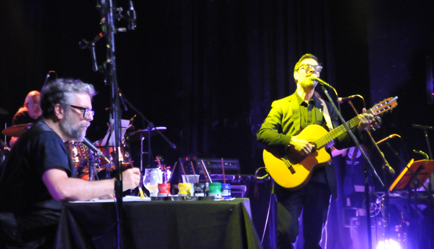 Mientras el músico deleitaba con sus temas, el virtuoso de Liniers los traducía en arte a través de sus pinceles y crayones a la vista de los asistentes. Rol que supieron intercambiar durante unos minutos quedando en evidencia quien dibuja y quien es músico. El show contó con la presencia en los vientos de Miguel Angel Tallarita, quien es el trompetista del Indio Solari en los Fundamentalistas del Aire Acondicionado.