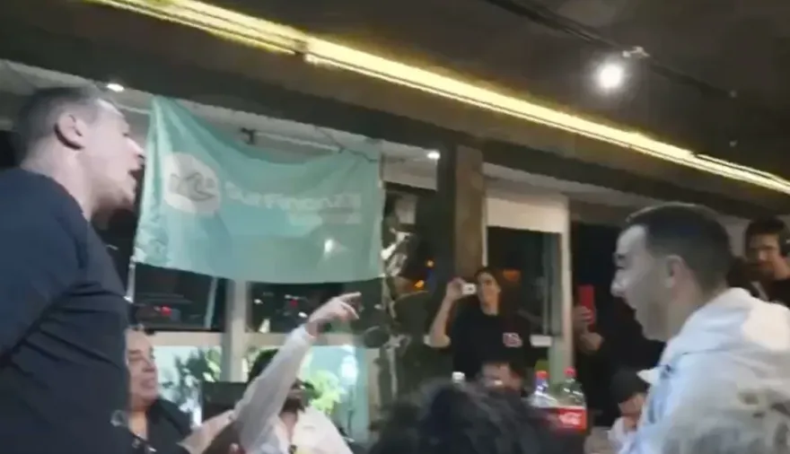 Tal como había trascendido, el Turco se molestó por un chiste subido de tono del influencer sobre su esposa: primero le tiró agua con un vaso y luego terminaron a las piñas.