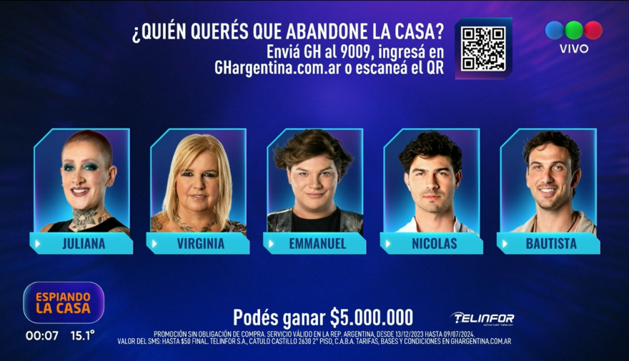 Anoche en Gran Hermano Martín Ku hizo valer su liderazgo y decidió salvar de la placa de nominados a Darío, que había recibido casi 30 votos por parte de los eliminados del certamen. A la hora de subir un compañero, no tuvo opción y tuvo que fulminar a Bautista, que se sumó a la placa con Juliana que está para siempre en placa por sanción, y a los más votados de la semana: Virginia, Emmanuel y Nicolás. El domingo uno de ellos dejará la casa, y el resto estará entre los seis mejores.