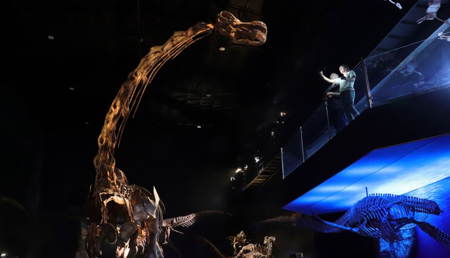 “Patagotitan será la atracción principal pero en total tenemos en exhibición 32 dinosaurios y, obviamente nosotros al ser colección de patrimonio provincial tenemos piezas originales y réplicas. Muchas de las especies que se ven en las réplicas están sus piezas originales debajo”, cuenta a PERFIL Matías Cutro, coordinador de comunicación y actividades de extensión del MEF.