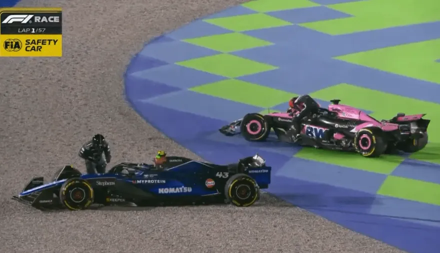 El piloto argentino Franco Colapinto (Williams Racing) chocó con Esteban Ocon (Alpine) en la primera curva tras la largada de la penúltima carrera de la temporada 2024 en el Circuito Internacional Losail del Gran Premio de Qatar, y quedó fuera de competencia.