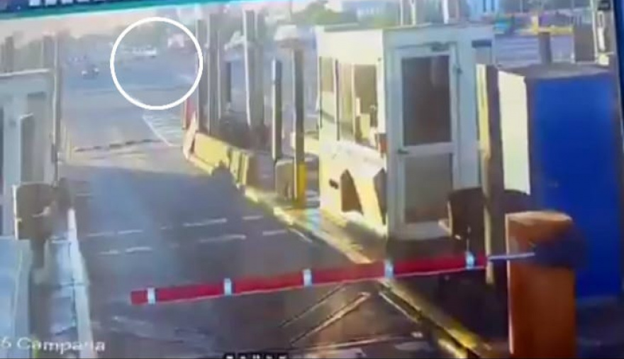 Horas después se dio a conocer el video donde se muestra cuando el auto, a alta velocidad, se estrella contra la estructura de cemento y sale volando contra la cabina.