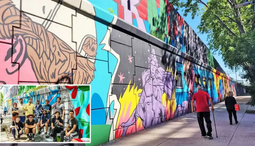“Este mural lo habíamos propuesto desde la productora hace unos tres años, pero en ese momento no hubo interés y quedó archivado. Este año nos convocaron de la Ciudad para presentarles una nueva propuesta que ‘hablara’ sobre el barrio de Palermo y lo presentamos. Tras la aceptación por parte de las autoridades, armamos un equipo de muralistas, productores y asistentes. La movida incluyó el uso de una grúa y un gran operativo de logística”, explicó Gabriela. .