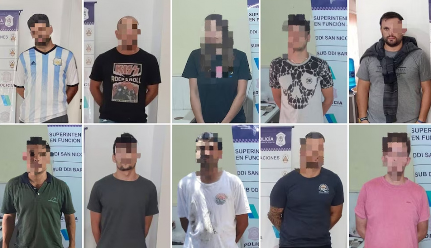 Fuentes policiales confirmaron que los principales detenidos fueron Pablo Mariano Diez (48), Eduardo Maximiliano Braga (30), Rodolfo Andrés Desanzo (38), Luis Alberto Pardo (33) y Facundo Omar Villalba (35). Además, fueron arrestados Washington Elías Velo (33), Alexis Alberto Aguilar (33), Francisco José Molina (27), Daiana Solange García (34) y Roque Esteban Maneiro (20).