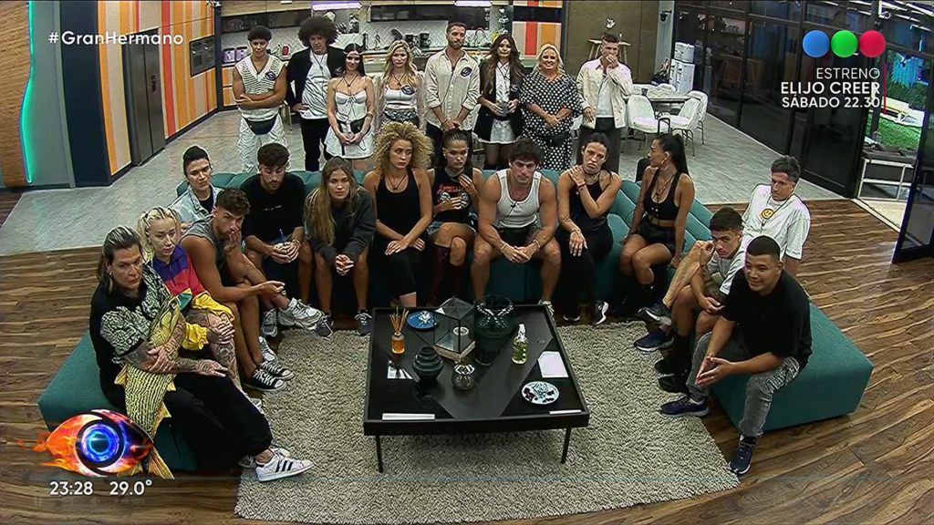 Ahora están todos en placa positiva para la próxima eliminación, salvo quién se convierta líder de la semana. Para varios nuevos será su primer encuentro con la gente para saber si gusta o no su personaje. Los nominados son Lourdes, Chiara, Eugenia, Delfina, Katia, Juan Pablo, Gabriela, Lorenzo, Luca, Lucía, Luciana, Luz, Marcelo, Martina, Renato, Saif, Sandra, Bati, Selva, Santiago y Ulises.