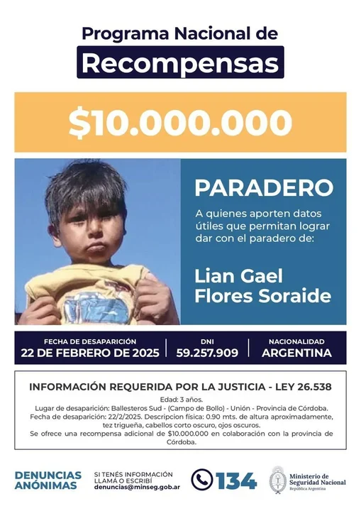 En este marco, sostuvo que el pequeño “no está acá” (Ballesteros Sud), motivo por el cual se continuará con la búsqueda en otros puntos claves.
