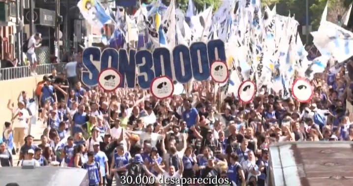 El video fue difundido horas antes de que comenzara la marcha central por el 24 de marzo, encabezada por Abuelas y Madres de Plaza de Mayo, HIJOS, y diversas organizaciones, que volvieron a reclamar justicia y memoria por los 30 mil desaparecidos.