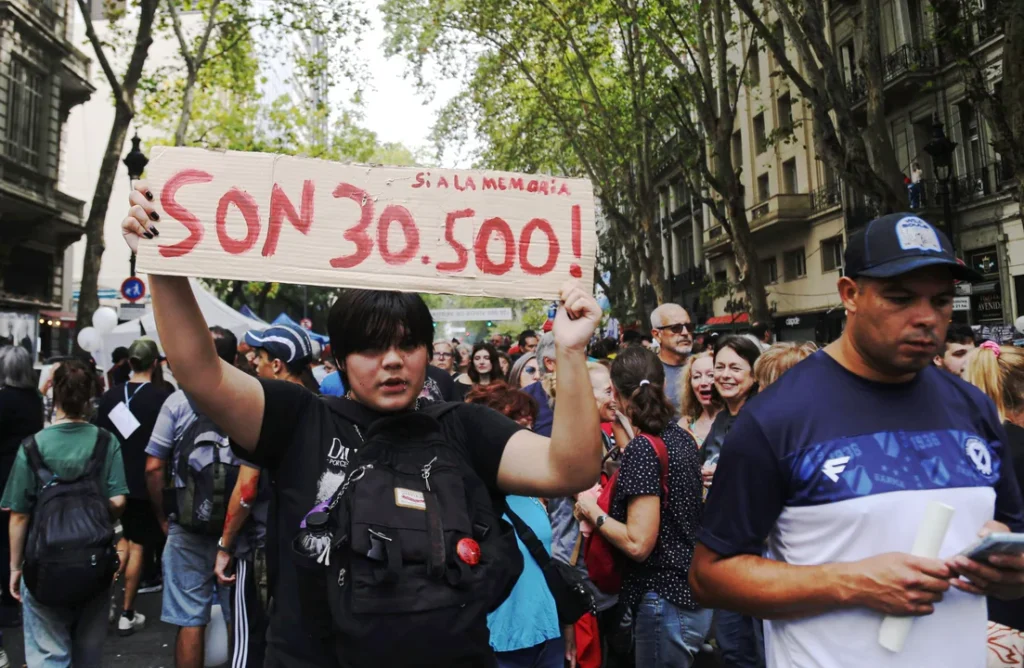 Organizaciones de derechos humanos y partidos políticos de la oposición encabezaron hoy la marcha en Plaza de Mayo por Memoria, Verdad y Justicia, que este año concentró numerosas críticas contra la gestión de Javier Milei.