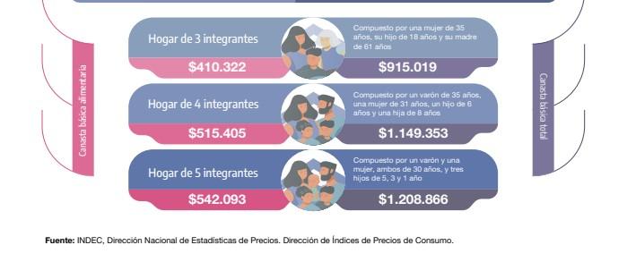 En julio, una familia de 4 integrantes necesitó $515.405 para no ser indigente y $1.149.353 para no ser pobre.