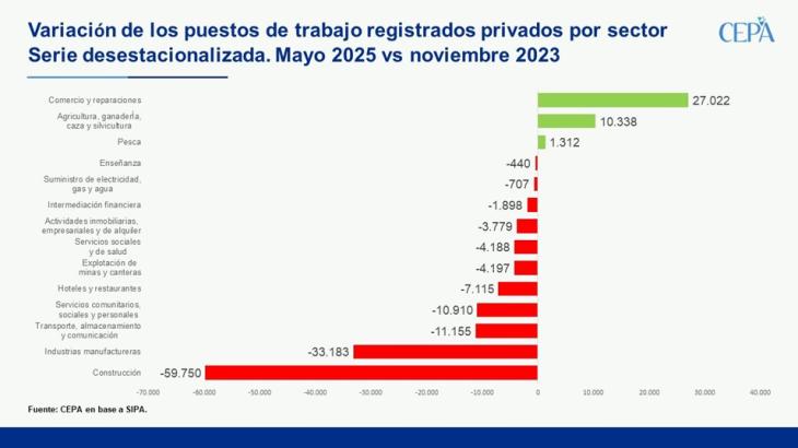 Sólo 3 sectores crearon trabajo desde noviembre de 2023: Comercio, Agro y Pesca pero lejos están de compensar las pérdidas de la Construcción y la Industria Manufacturera.