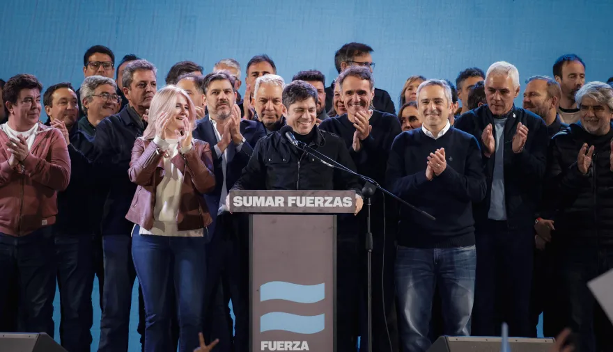 Al término de las palabras de Cristina, subió al escenario Axel Kicillof. El gobernador, flanqueado por Verónica Magario y Gabriel Katopodis, se permitió unos minutos de moderado festejo, y luego dedicó el triunfo a Cristina “injustamente condenada y que hoy debería estar en este escenario”.