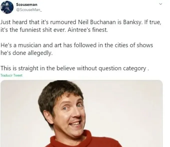Según un usuario de redes sociales, @ScouseMan_, “Acabo de escuchar que se rumorea que Neil Buchanan es Banksy. Es músico y el arte ha continuado en las ciudades en donde ha dado shows”. Esta conexión entre las giras de Buchanan y la aparición de obras de Banksy en ciertas ciudades alimentó la especulación sobre su posible doble vida.