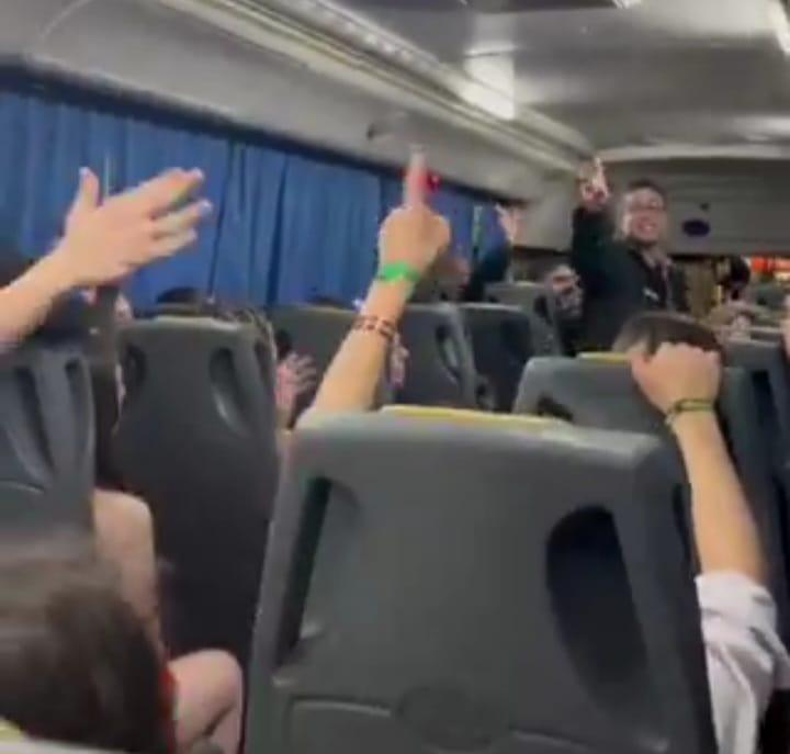 En las imágenes, por sui fuera poco, también se ve como uno de los coordinadores de la empresa de viajes en lugar de detener la situación, arengaba y se sumaba a los cánticos de los estudiantes.