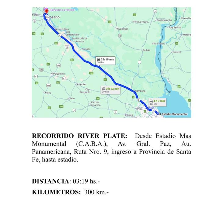 🔴 Por su parte, la parcialidad de River saldrá desde el Estadio Monumental, tomando Av. General Paz, Autopista Panamericana y Ruta N° 9 hasta ingresar a Santa Fe y dirigirse al Gigante de Arroyito.