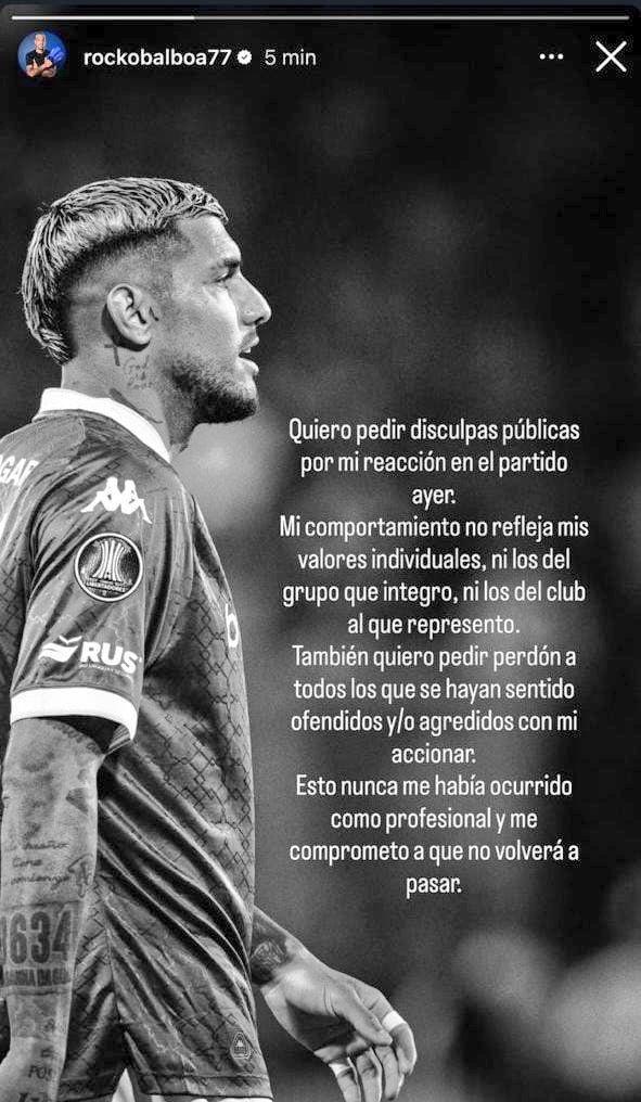 Mientras tanto, en la tarde de hoy se conocieron las disculpas públicas de Rocky, quien a través de su cuenta en Instagram se sintió apenado por el hecho y aseguró que no volverá a pasar.