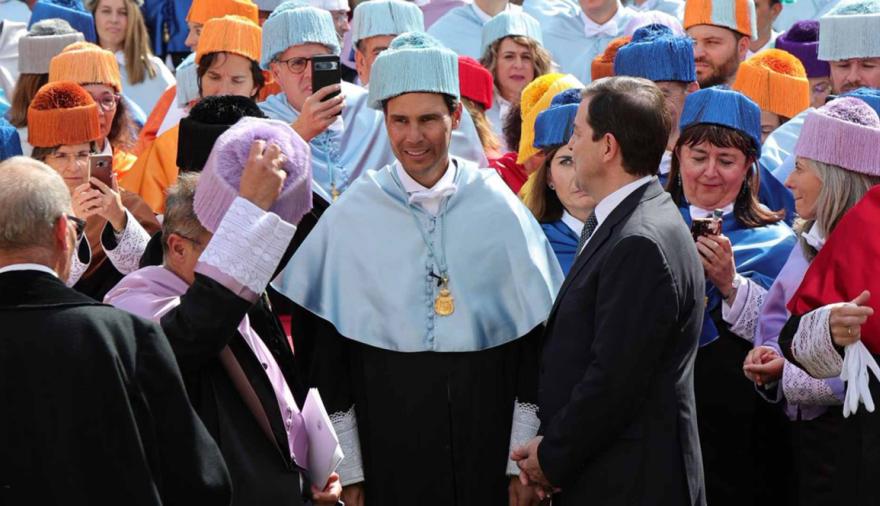 El acto tuvo lugar en el histórico Paraninfo, con la presencia de más de 180 doctores, autoridades académicas y familiares del homenajeado. Vestido con la tradicional muceta azul, Nadal recibió la medalla que lo incorpora al Claustro de Doctores y pronunció un discurso que hilvanó valores, memoria y gratitud.