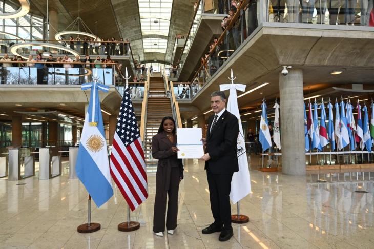 “Simone Biles no sólo es una de las deportistas olímpicas más destacadas de todos los tiempos, es un símbolo de superación, compromiso y perseverancia. Su historia inspira a millones de jóvenes y recibirla nos impulsa a seguir promoviendo los valores del esfuerzo y la inclusión a través del deporte”, dijo el secretario de Deportes, Fabián “Chino” Turnes.