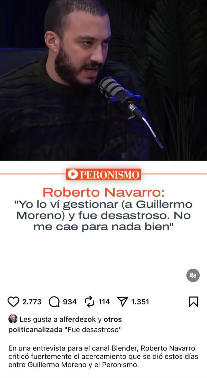 En su paso por el ciclo de Tomás Rebord en Blender, el periodista Roberto Navarro lanzó una definición tajante sobre Guillermo Moreno, histórico dirigente del peronismo y exsecretario de Comercio Interior: “Yo lo vi gestionar a Moreno y fue desastroso, no me cae nada bien”. La frase no pasó inadvertida y rápidamente circuló en redes sociales, generando debate interno en el oficialismo y en el propio arco peronista.