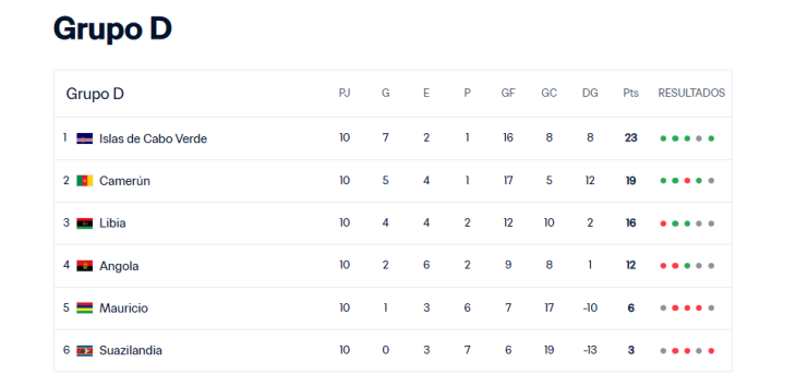 El equipo finalizó como líder del Grupo D con 23 puntos, superando por cuatro unidades a Camerún, que deberá disputar el repechaje. La campaña incluyó siete triunfos, dos empates y una sola derrota en diez partidos, con 16 goles a favor y apenas 8 en contra, consolidando una diferencia de gol positiva que reflejó su solidez.