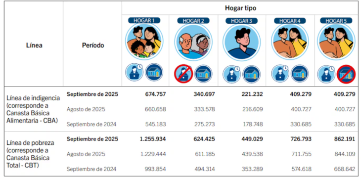 El mismo informe ubicó la línea de pobreza en $1.258.000 y la de indigencia en $620.000, lo que deja en evidencia la fuerte dispersión de ingresos y la dificultad de muchos hogares para sostener un nivel de vida que hasta hace pocos años se asociaba con la clase media urbana.