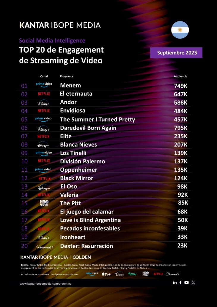 Por tercer mes seguido, una producción argentina ha dominado las conversaciones en redes sociales, consolidándose como el contenido de streaming más interactuado en plataformas como X e Instagram. Según el informe de Social Media Intelligence elaborado por Kantar IBOPE Media, empresa especializada en mediciones de audiencias y datos globales, esta miniserie ha superado a gigantes internacionales y locales en términos de menciones, hashtags, likes y compartidos.