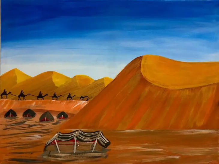 Sus obras, cargadas de paisajes desérticos, caballos en libertad y horizontes solitarios, reflejan una nostalgia por un mundo sin fronteras ni guerras. Inspirado por el cine, la música y la cultura occidental, Omar encontró en el arte un refugio y una forma de expiar su pasado. Sus cuadros -con tonos cálidos y escenas de frontera- transmiten tanto el deseo de independencia como una búsqueda íntima de redención.
