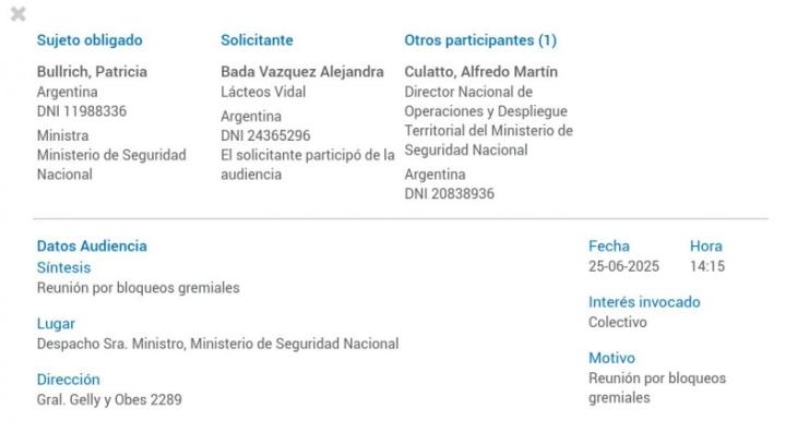 El caso tiene un giro explosivo: en 2024, un avión de Bada Vázquez se estrelló en Entre Ríos con 350 kilos de cocaína. Días después, la empresaria fue recibida por Bullrich en el Ministerio de Seguridad, pese a estar bajo la lupa judicial.