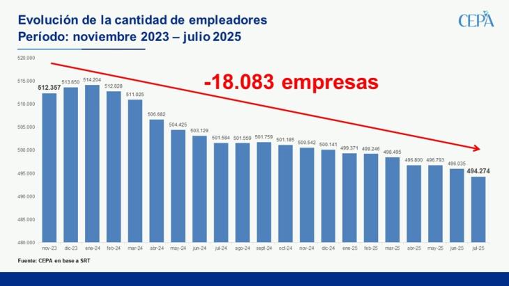 El parate de la actividad económica no sólo afecta a los trabajadores sino también a las empresas. Desde que gobierna Milei, cierran 30 empresas por día. Así, totalizan 18.083 las compañías que se dieron de baja entre noviembre de 2023 y julio de 2025.