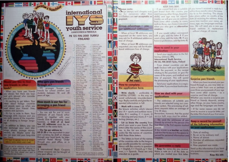 En 1983 participaron del International Youth Service (IYS), un programa con sede en Finlandia creado en 1952 para fomentar el intercambio cultural y el aprendizaje del inglés entre estudiantes de todo el mundo. Funcionaba de una manera sencilla pero poderosa: los alumnos completaban un formulario con sus intereses y recibían la dirección postal de un joven extranjero con quien comenzar a escribir cartas. Así, Michelle tomó papel y pluma, escribió su primera carta y la envió a una dirección desconocida en la costa atlántica canadiense. Días después, la respuesta de Sonya cruzaba el océano rumbo al sudeste asiático.