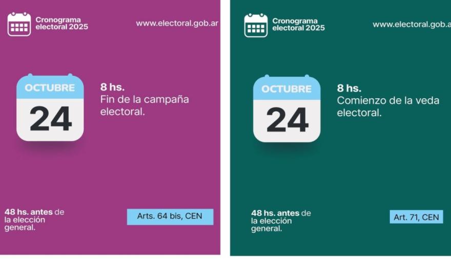 Comenzó la veda electoral en todo el país y, con ella, una serie de restricciones previstas por la Ley 19.945 del Código Electoral Nacional que buscan garantizar un proceso transparente y proteger la decisión de los votantes.
