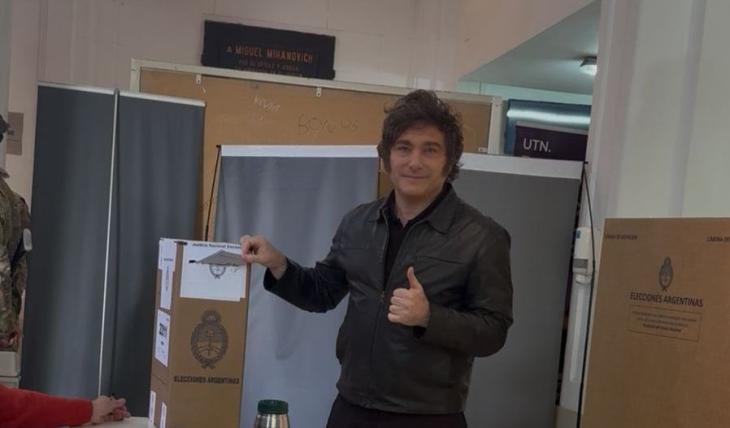 Con un semblante tranquilo, Milei depositó su voto a las 11:07 en la urna de la mesa 2211, cumpliendo con su obligación como ciudadano y mandatario.
