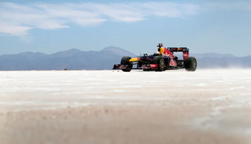 La región de Salinas Grandes está a 3.350 metros de altura sobre el nivel del mar. El auto empleado fue un Red Bull 07 campeón mundial con Sebastian Vettel en 2011, con un motor Renault RS27 V8 de 2,4 litros.