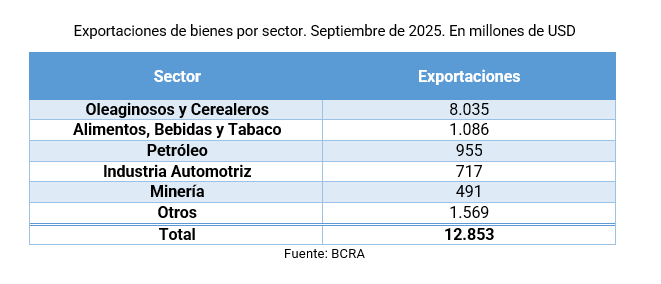 Con esta medida, las exportaciones de bienes alcanzaron los USD 12.853 millones, segunda mayor marca, sólo por detrás del dólar soja (USD 12.891 millones).