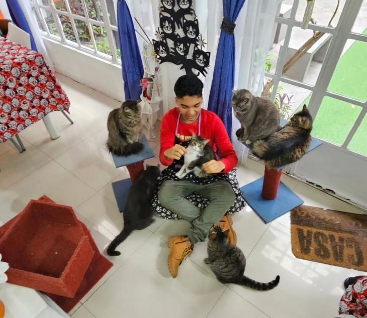 “El Cat Café nació de mi amor por los animales y del deseo de ofrecer un lugar donde las personas puedan relajarse, conectar y sentirse acompañadas”, explicó Capasso. En el local, los visitantes pueden disfrutar de una merienda mientras comparten el ambiente con gatos rescatados que viven allí de manera permanente.