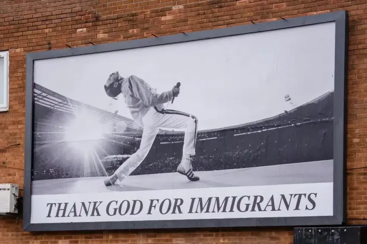 Varios carteles aparecieron con distintas gráficas que decían "Thank God for Immigrants" ("Gracias a Dios por los inmigrantes") en distintos puntos de Inglaterra. Esta campaña busca rendir homenaje a figuras que, siendo inmigrantes o hijos de inmigrantes, colaboraron a realzar la identidad cultural de aquel país.
