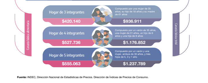 Su valor se ubica muy por debajo de una canasta básica para una familia tipo que calcula el INDEC. En septiembre, la canasta básica alimentaria (CBA, aquella que determina la línea de indigencia) es de $527.736 y la canasta básica total (CBT, que expresa la línea de pobreza) es de $1.176.852.