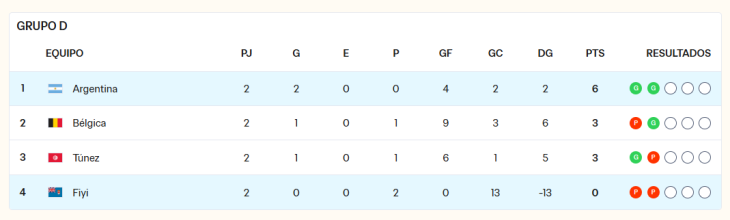 El rival llega nocaut: Fiyi perdió 7-0 ante los belgas y 6-0 frente a los tunecinos, y hablar de milagro para avanzar sería una utopía: tiene 0 goles a favor, 13 en contra y juega contra el puntero. La Argentina, en cambio, apunta a consolidar su juego, probar variantes de cara a la próxima instancia y cerrar con puntaje ideal.