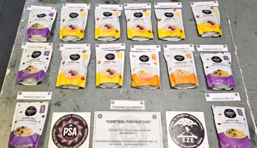 El procedimiento fue realizado de manera conjunta con agentes de la Agencia de Recaudación y Control Aduanero (ARCA). Al revisar la valija despachada, los oficiales encontraron 20 paquetes identificados como granola. Dentro de 18 de ellos había una sustancia blanquecina que, tras las pruebas de campo, dio resultado positivo para clorhidrato de cocaína. En total, el peso alcanzó los 9.224 gramos.