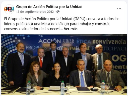 Así, junto a esas vertientes se conformó en el 2012 el Grupo de Acción Política para la Unidad (GAPU). En su lanzamiento estuvieron Eduardo Amadeo, Rafael Pascual y la propia Bullrich, entre otros.