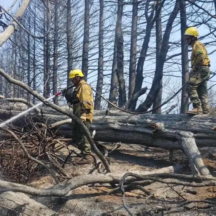También bomberos voluntarios, equipos de Defensa Civil y personal de seguridad, incluyendo un helicóptero con helibalde para ataques directos, autobombas, maquinaria para abrir cortafuegos y cuadrillas que realizan enfriamientos en los puntos más calientes. Pese al esfuerzo, el viento variable obligó a redoblar la presencia de equipos en el terreno para sostener el control inicial.