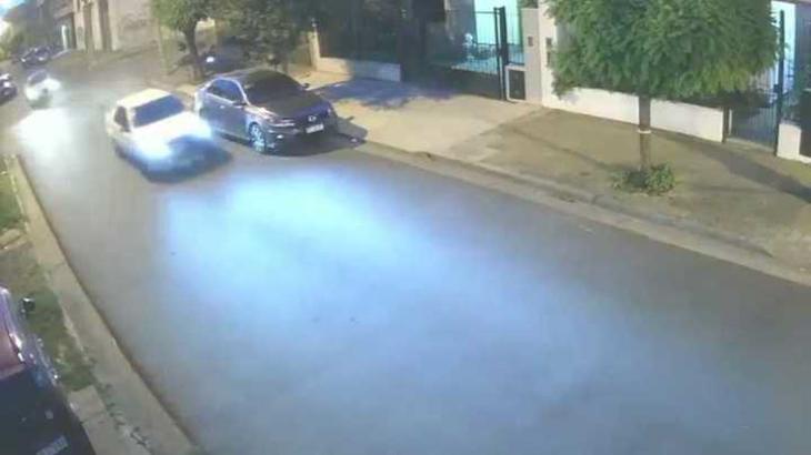 El dueño de la carnicería reconoció ambos vehículos como los utilizados en el asalto y la secuencia quedó registrada en una cámara de seguridad ubicada en Paunero y Rivera. En las imágenes se observa la maniobra de los autos y el instante en que la moto es embestida.