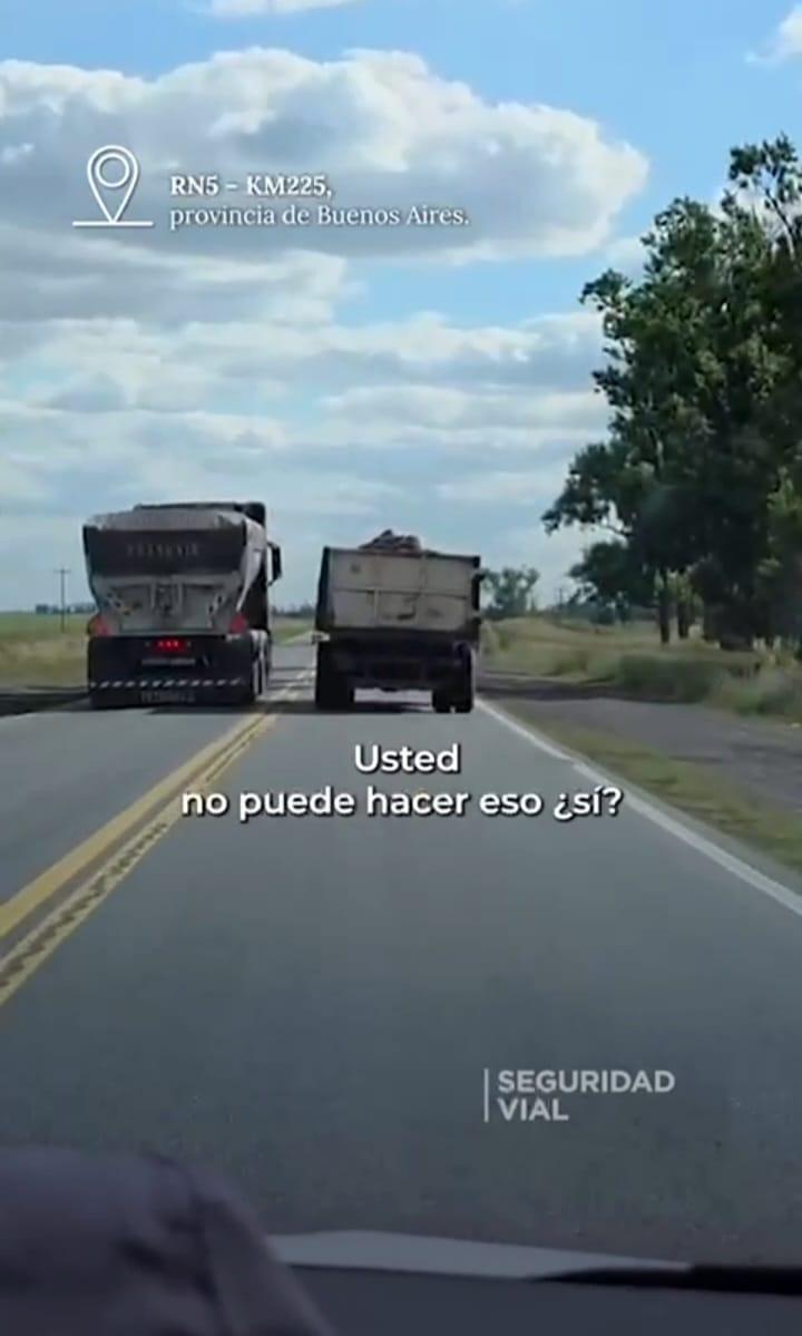 Un camionero deberá pagar una multa de $1.700.000 por realizar un adelantamiento prohibido sobre la ruta 5, a la altura del kilómetro 225, en la provincia de Buenos Aires.