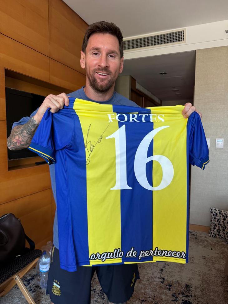 La camiseta que Messi firmó tiene el apellido del expresidente del club, Marcelo Fortes, quien falleció hace más de dos años, dando aún más significado a la colaboración del campeón del mundo.