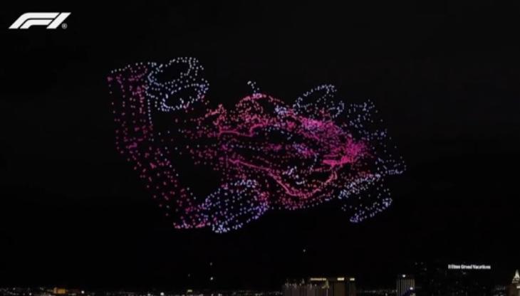 Los drones formaron un auto de Fórmula 1 sobre el final de la carrera en Las Vegas (Foto: F1)Además, el paso de numerosas celebridades por el paddock fue otro de los atractivos que tuvo esta carrera, que siguieron con atención el desarrollo del evento, entre ellas Beyonce, Jay-Z, Michael Douglas y Catherine Zeta-Jones, quien fue la encargada de ondear la bandera a cuadros para Max Verstappen, lo que le imprimió un toque de glamour a un circuito que lo tiene todo.