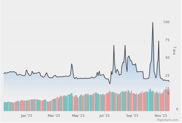 Las demás tasas respondieron: la tasa de caución a un día se operó en 19% el jueves, dejando muy atrás los 75 puntos de fines de octubre.
