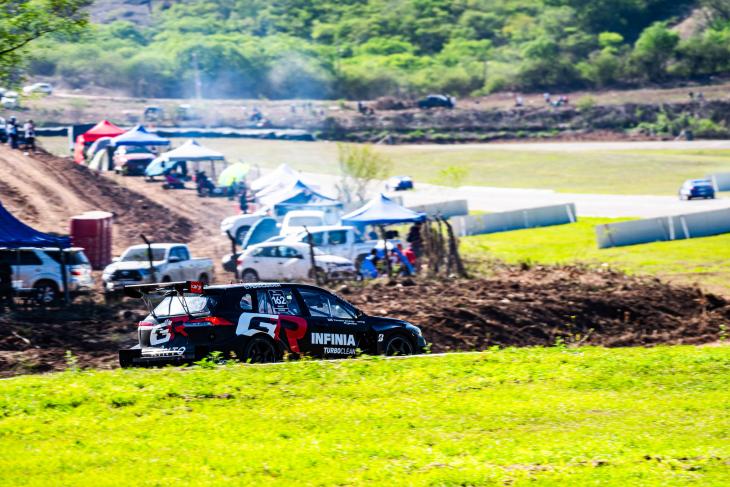 Apenas se apagó el semáforo, Stang fue en busca de la punta sobre Palau, pero por un toque del mendocino el auto se le puso de costado y casi pierde todo, pero se recuperó y se mantuvo entre los primeros puestos. Adelante Palau logró afirmarse en el liderazgo con un notable ritmo en el VW Nivus del Halcón Motorsport.