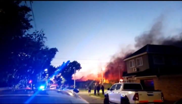 La intensidad del siniestro generó columnas de fuego de más de dos metros de altura, por lo que los vecinos de la manzana fueron evacuados de manera preventiva mientras continuaban las tareas de control y enfriamiento en la zona.