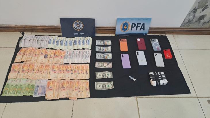 Con la autorización judicial correspondiente, se realizó la prueba de campo, que dio positivo para cocaína. El paquete tenía un peso de 506 gramos. Además, se secuestraron el vehículo, seis teléfonos celulares, 589.800 pesos, 352 dólares y otros elementos de interés para la causa.