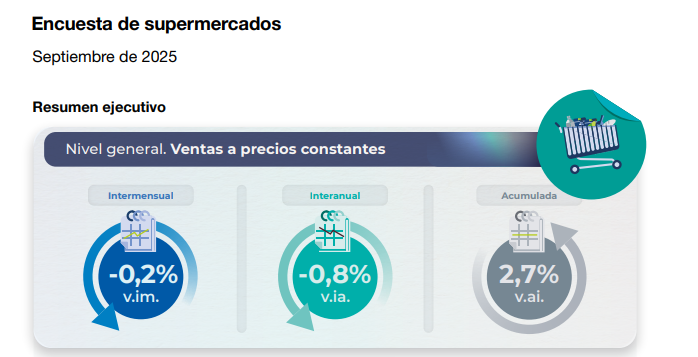 Respecto a agosto, el consumo retrocedió por sexto mes consecutivo (-0,2%). En el acumulado de los primeros nueve meses del año, las ventas mejoraron 2,7%.